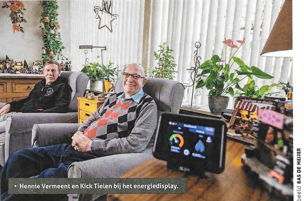 elkaar wekelijks de standen uit te wisselen.‘ Zelf verwarmt hij zijn huis nog steeds centraal. ‘Mijn vrouw werkt in de bejaardenzorg. Iedereen die weet hoe warm het in het gemiddelde verzorgingshuis is, begrijpt dat zij na haar werk niet in een koele huiskamer gaat zitten.‘ Hennie is sinds de komst van het energiedisplay het meeste verrast over de €9,- per maand die hij maandelijks bespaart door alle stand-by-apparatuur uit te schakelen: ‘Dat is nogal wat.‘