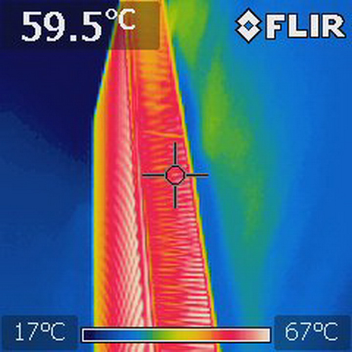 De straling is mede afhankelijk van de temperatuur van het object. Deze temperaturen worden door de infraroodcamera in kleuren omgezet.