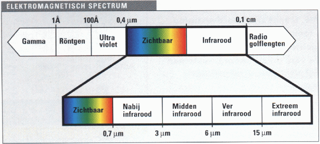 Straling door warmte-ontwikkeling en warmteverlies kan je contactloos, dus veilig, en nauwkeurig worden gemeten met een infrarood-camera. Met zo’n camera zie je dingen die wij met het blote oog niet zien. Een mens ziet alleen het zichtbare licht. Met een infraroodcamera zie je de straling die een warmtebron uitzendt.