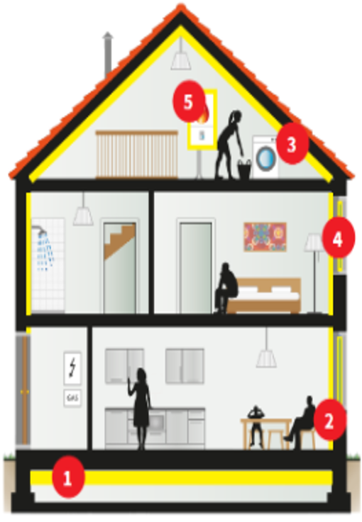 - Een groot deel vab de warmte gaat verloren door slechte isolatie, naden en kieren;